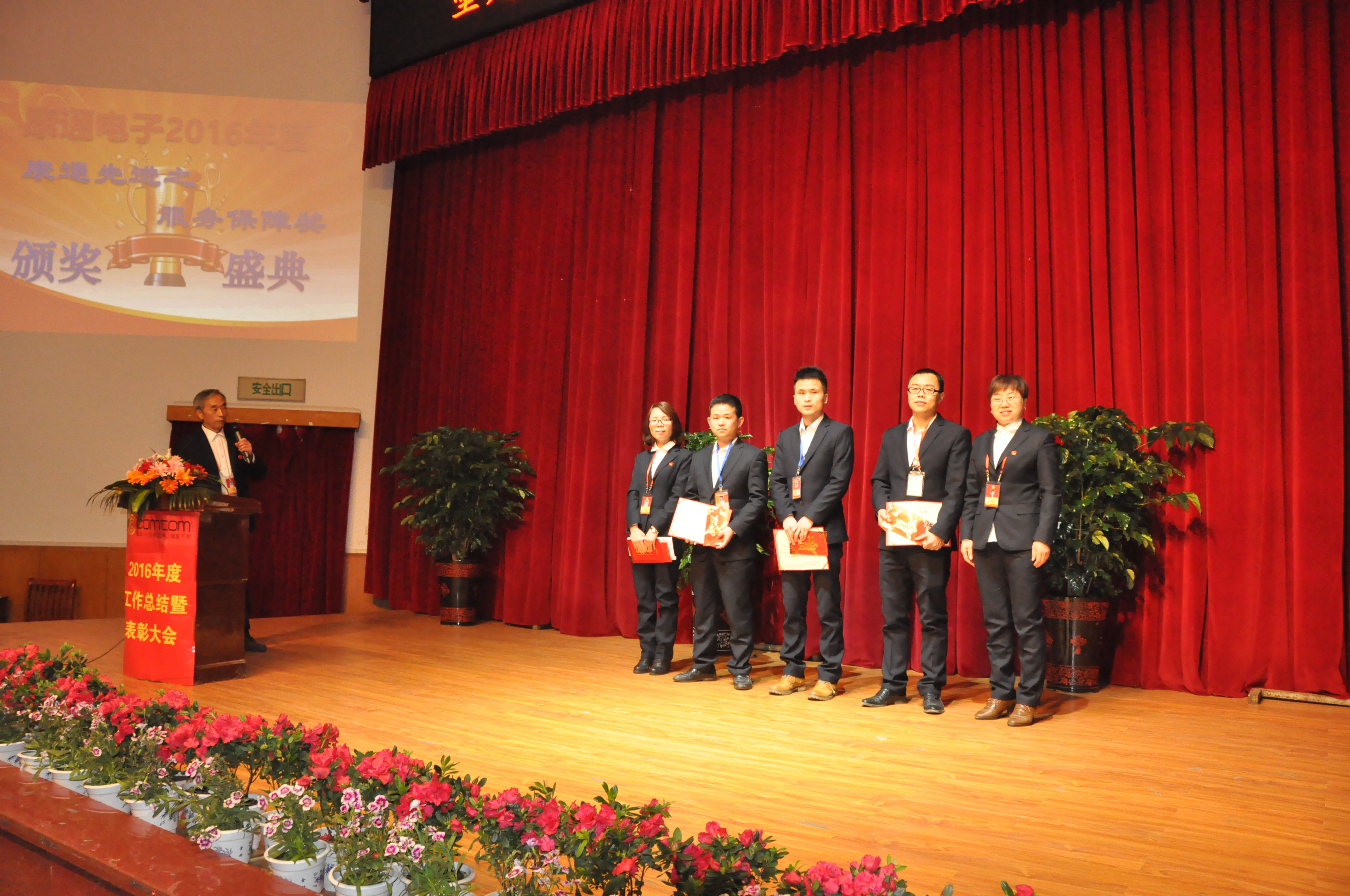 質(zhì)量副總楊劉生向2016年度康通杰出團(tuán)隊(duì)獎(jiǎng)獲獎(jiǎng)部門貼片車間團(tuán)隊(duì)頒獎(jiǎng)并合影留念