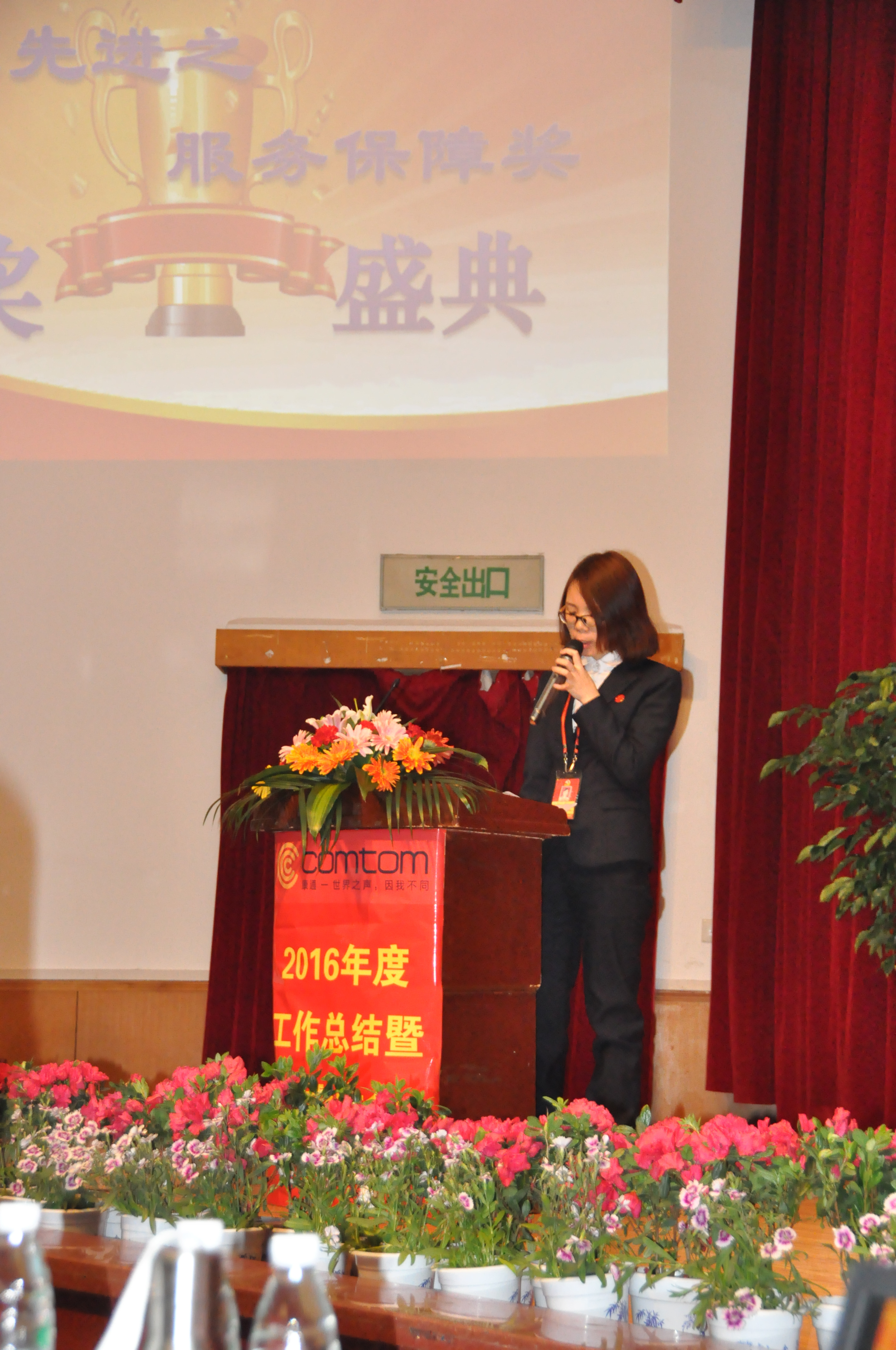 運(yùn)營(yíng)副總方青向2016年度康通技術(shù)服務(wù)獎(jiǎng)獲獎(jiǎng)員工頒獎(jiǎng)并合影留念