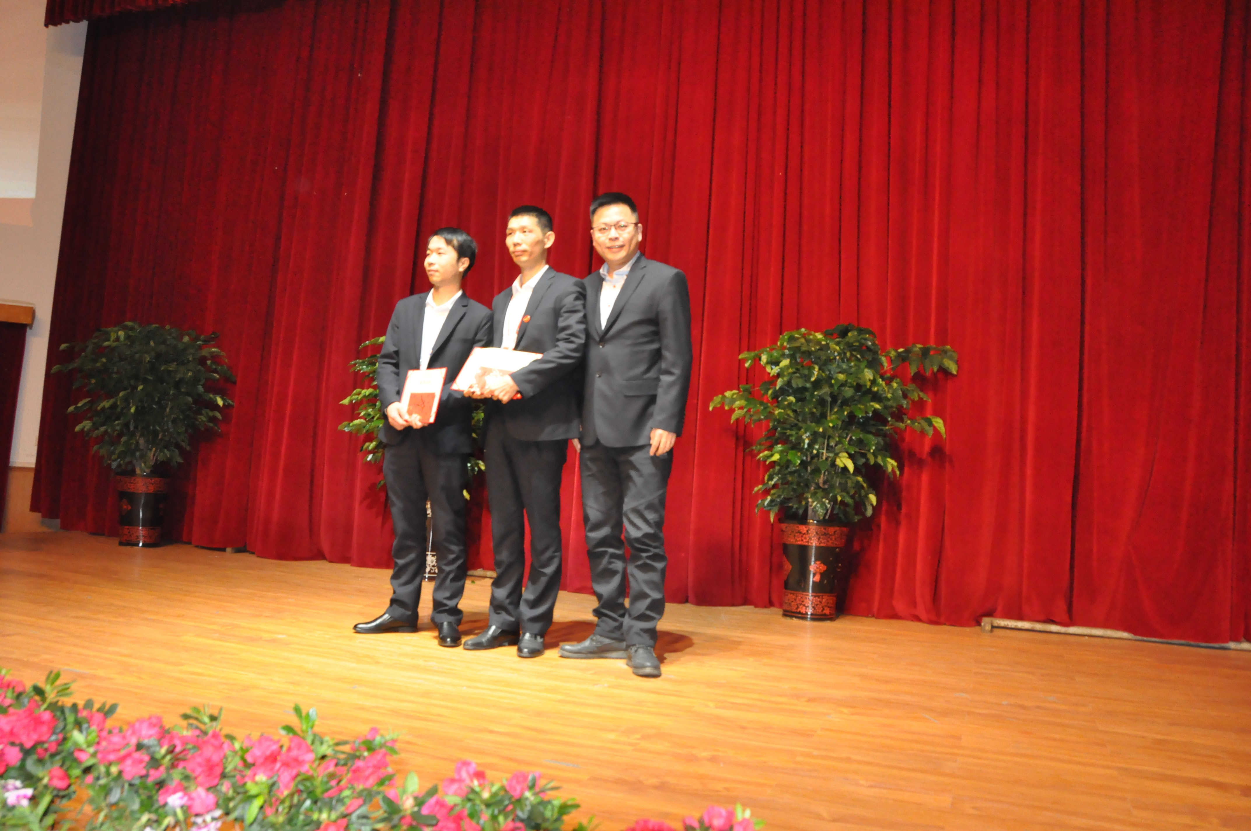 質(zhì)量副總楊劉生向2016年度康通工匠鉆研獎(jiǎng)獲獎(jiǎng)員工頒獎(jiǎng)并合影留念