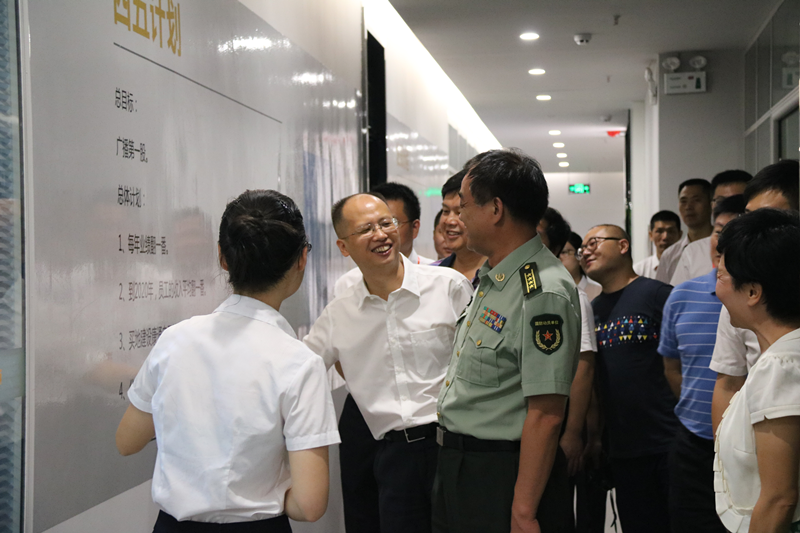 本網(wǎng)訊(通訊員 袁雅玲)7月19日上午,長(zhǎng)沙市委常委、警備區(qū)司令員王忠斌蒞臨康通電子調(diào)研,市委統(tǒng)戰(zhàn)部副部長(zhǎng)、工商聯(lián)黨組書記丁文,市經(jīng)信委黨委委員、工會(huì)主任歐衛(wèi)兵,芙蓉區(qū)委副書記、區(qū)長(zhǎng)周春暉,區(qū)委常委、隆平園區(qū)黨工委書記王曙光等領(lǐng)導(dǎo)參加,公司董事長(zhǎng)劉雅浪、黨支部書記夏光國(guó)、運(yùn)營(yíng)副總方青及公司幾位復(fù)轉(zhuǎn)軍人員工參與接待。