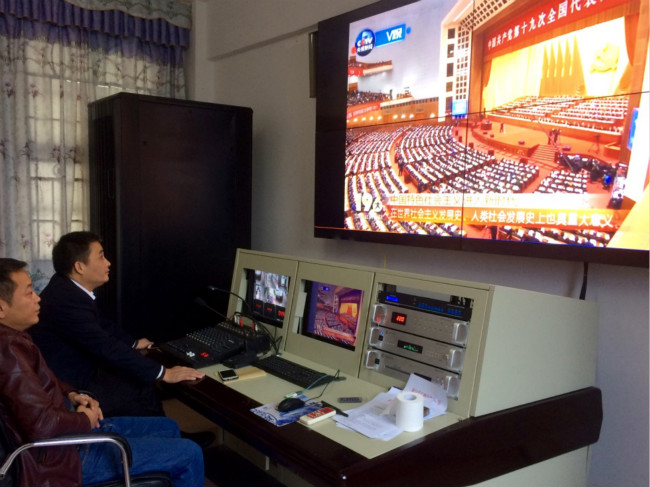 10月18日上午9:00,中國(guó)共產(chǎn)黨第十九次全國(guó)代表大會(huì)在人民大會(huì)堂開幕。習(xí)近平總書記代表第十八屆中央委員會(huì)向大會(huì)作報(bào)告。為迎接十九大的勝利召開,讓十九大盛況傳遍三湘大地,康通電子組織技術(shù)力量,安排多個(gè)技術(shù)小分隊(duì)奔赴湖南各地,保證當(dāng)?shù)氐摹按宕屙憽睆V播系統(tǒng)運(yùn)行正常,保證系統(tǒng)平臺(tái)能正常轉(zhuǎn)播十九大的專題節(jié)目,保證每個(gè)村的大喇叭都能傳遞黨的聲音。