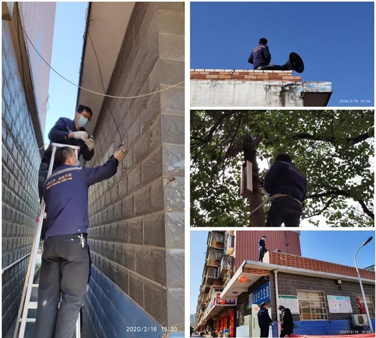 2月16日,正式啟動設備安裝施工。康通電子交付服務部的同事們通力協作,經過3天的連續作戰,至2月18日,圓滿完成了上述4個小區5個終端共20個喇叭點的施工安裝和交付使用的建設任務。