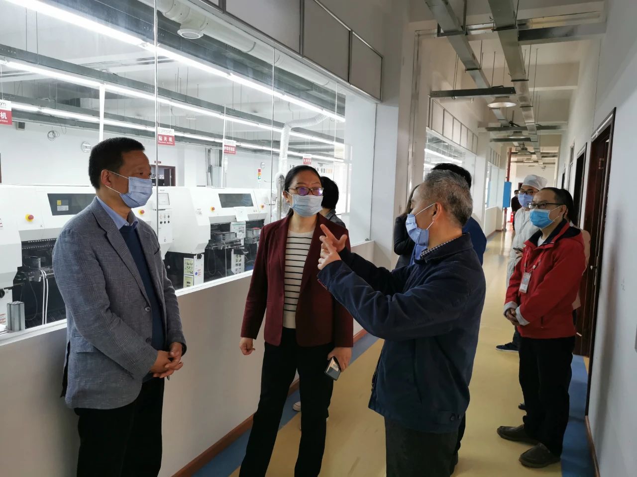 隨后,王書記一行來到三樓貼片車間走廊,隔著玻璃幕墻,參觀了貼片車間自動化生產流水線,了解了板件生產流程和工藝技術,詢問了貼片產品的應用領域和銷售情況。她對公司投資建設的現代化生產流水線,以科技進步大力提高生產效率和經濟效益給予了充分肯定。