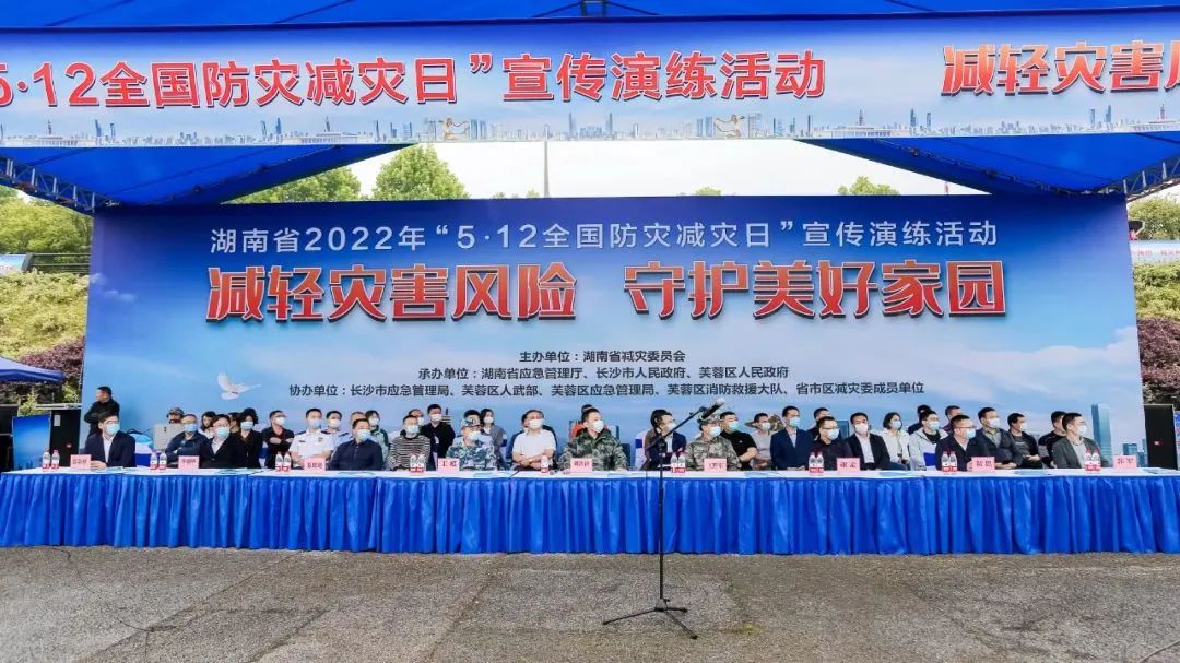 5月12日上午,湖南省2022年“512全國防災減災日”宣傳演練活動在長沙市芙蓉區舟橋廣場瀏陽河水域舉行,主題為“減輕災害風險守護美好家園”??低ㄗ鳛閼蓖ㄐ疟U详犑苎麉⒓颖O測預警信息發布、應急通訊保障、動力浮橋抵岸救援等演練科目。