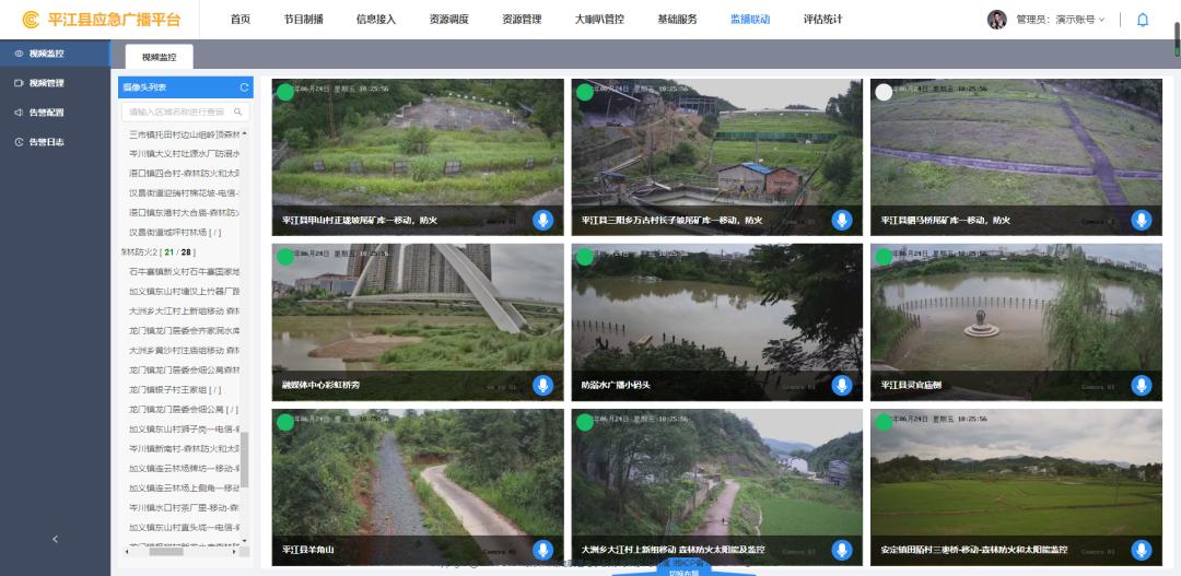 平江縣應急廣播特別將應急廣播終端與具備視頻分析功能的AI攝像頭聯動,實現應急廣播既能說,也能看千里眼、順風耳功能。廣泛應用于森林防火、尾礦庫監測和一江兩岸防溺水場景。