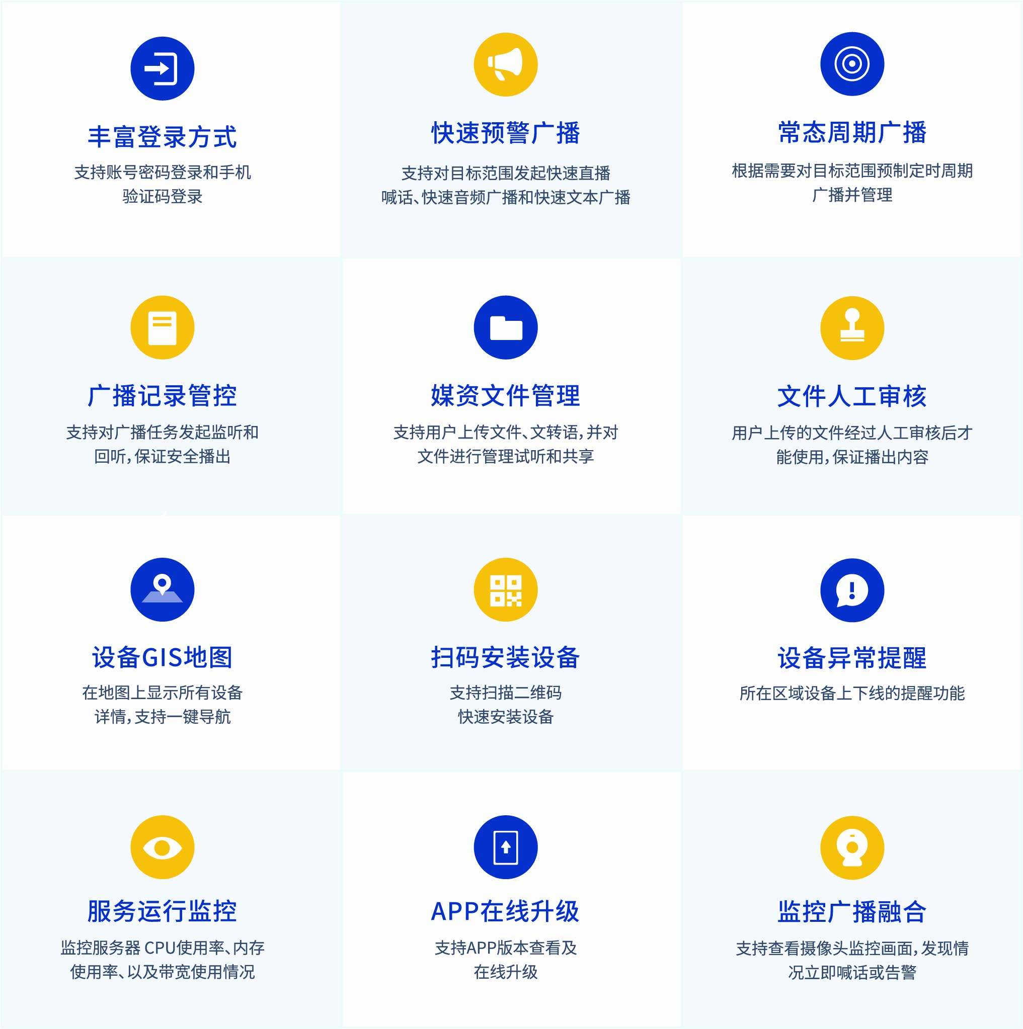 掌上應(yīng)急APP是應(yīng)急廣播系統(tǒng)的移動(dòng)端應(yīng)用軟件,用戶(hù)可通過(guò)手機(jī)隨時(shí)隨地對(duì)系統(tǒng)設(shè)備進(jìn)行播發(fā)控制、管理,在突發(fā)事件發(fā)生時(shí)可達(dá)到快速應(yīng)急的效果,同時(shí)支持APP掃碼安裝設(shè)備,使設(shè)備的安裝更加方便快捷。APP支持鴻蒙、Android、iOS等多種操作系統(tǒng),與應(yīng)急廣播平臺(tái)采用加密傳輸?shù)姆绞剑U蠌V播信息安全。
