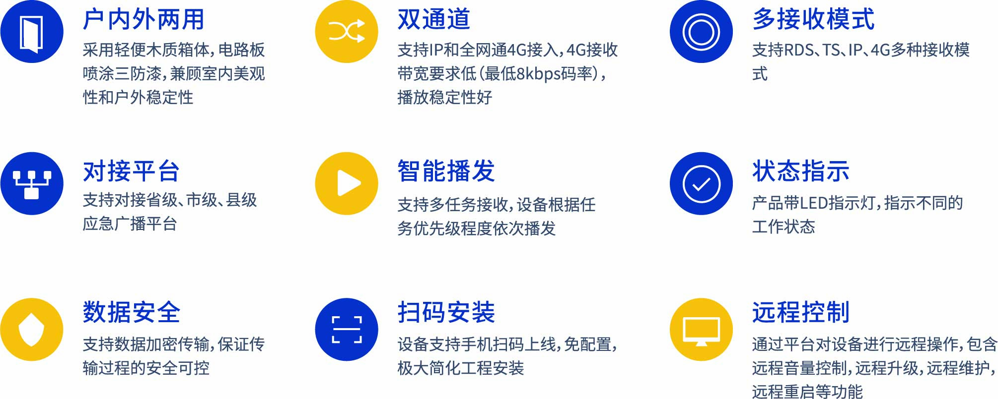 多模音箱是—款針對室內廣播的智能終端產品,是應急廣播系統中對廣播下發效果及廣播內容進行監聽的重要設備,是保障廣播合規合法的罣要手段。廣泛使用在播控中心或其他監管場景,可方便放置在播控臺。產品支持IP、TS、RDS和4G四種接收模式(可根據場景,選配模式),產品音頻部分采用高低音喇叭分頻設計輸出音質好,輸出功 率可達15W。