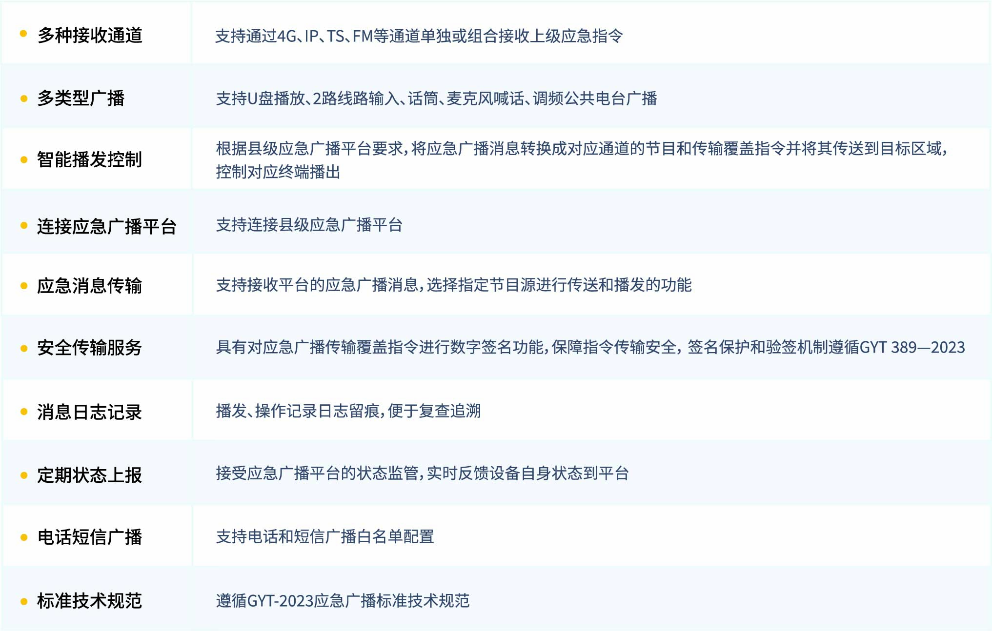 鄉(xiāng)村應(yīng)急廣播大喇叭適配器是一款集成播發(fā)、控制于一體的智能設(shè)備,安裝部署在鄉(xiāng)鎮(zhèn)、村的廣播室。適配器可接收上級廣播信號,經(jīng)過處理后實現(xiàn)面向終端進行廣播的功能;信號接收模式多樣,支持4G/IP/地面數(shù)字電視/有線數(shù)字電視/調(diào)頻等接收模式。適配器支持本地用戶控制,實現(xiàn)本地廣播的控制;本地廣播輸入方式多樣,支持線路輸入,本地 麥克風(fēng),U盤播放等。產(chǎn)品穩(wěn)定、功能多樣,能夠完美滿足各級用戶的基本需求。