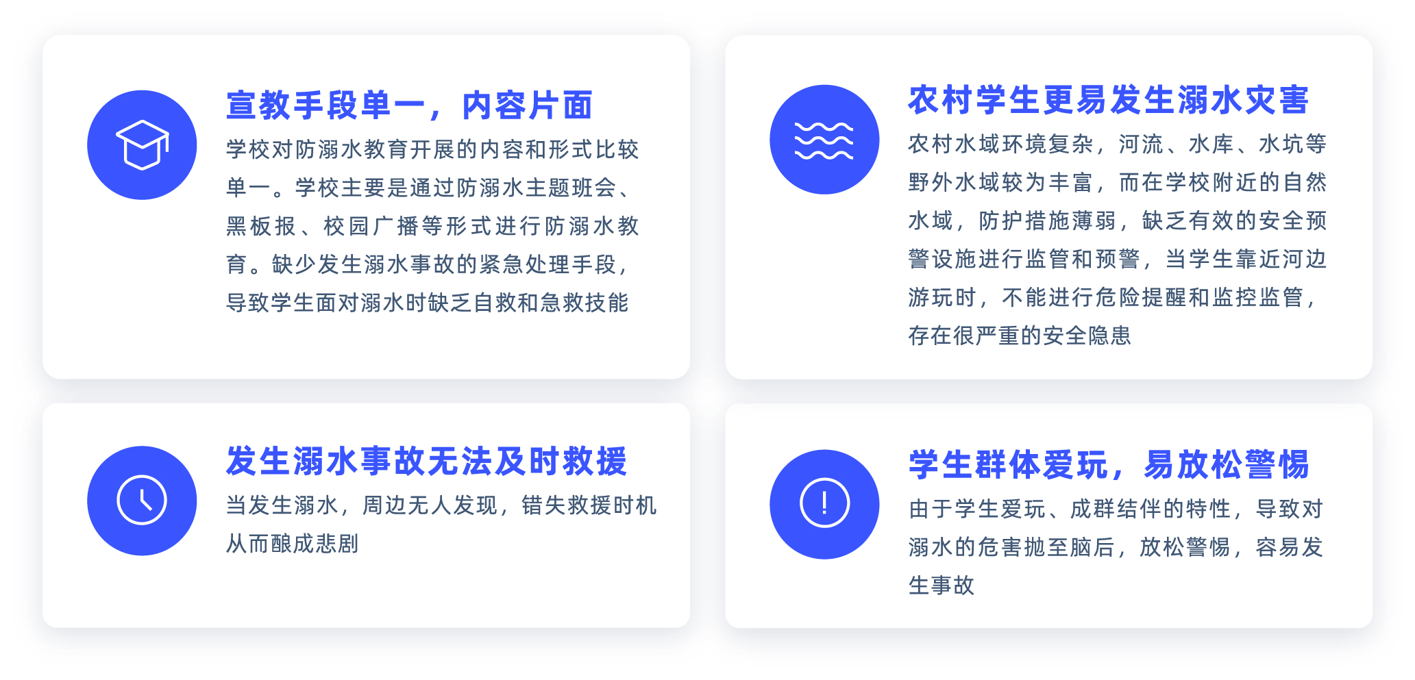 根據《2022 中國青少年防溺水大數據報告》顯示,我國每年約有 5.9 萬人死于溺水,其中未成年人占據95%以上。在我國,溺水、道路交通傷害、跌落、中毒等是構成青少年傷害的常見類型。其中,因溺水造成的傷亡位居我國 0-17 歲年齡段首段,占比高達33%,1-14 歲溺水事故的比例超過40%。國務院教育督導委員會辦公室發布了2020年第3號預警,要求各地學校要加強宣傳防溺水知識以及溺水的危害,同時各級政府立即發布風險提示和預警,完善各類安全防護設施,加強巡檢,及時發現險情,妥善做好應急處置。預防學生溺水刻不容緩。